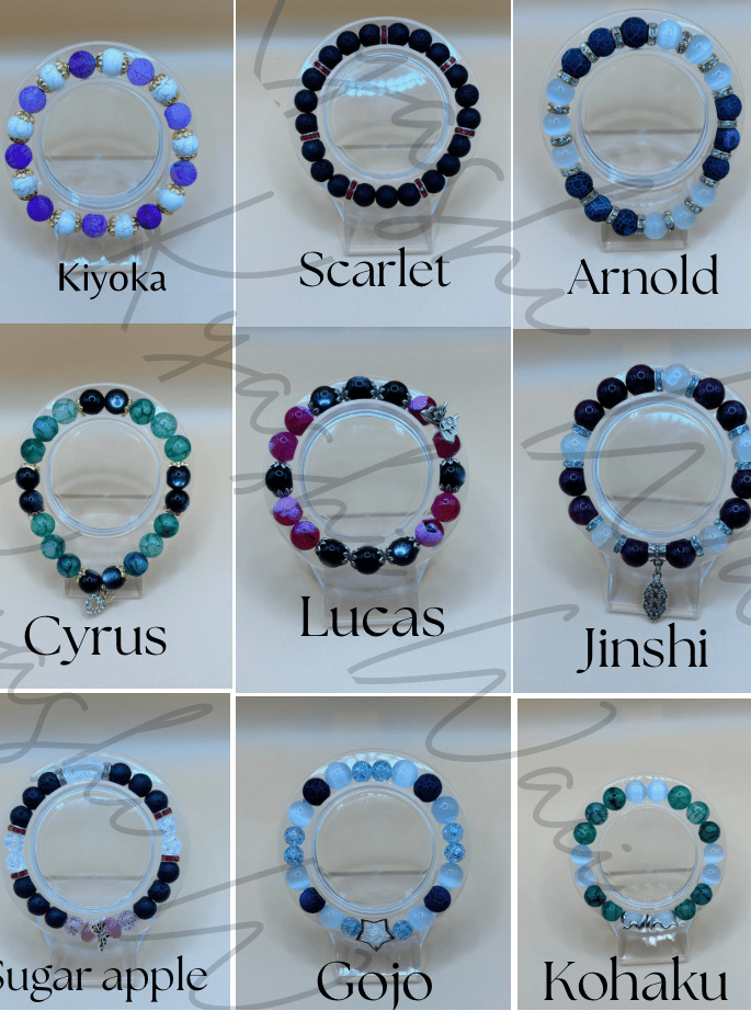 Ces bracelets sont des créations artisanales réalisées à partir de pierres naturelles, inspirées de l’esthétique et des ambiances des anime japonais.Chaque modèle est composé de pierres aux couleurs et textures naturelles (mates, polies ou à effet craquelé selon la pierre), associées à des intercalaires décoratifs choisis pour leur harmonie visuelle.
